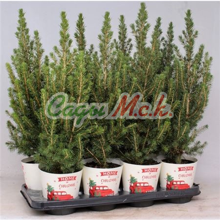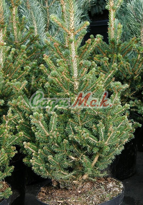 Ель канадская Коника (Picea glauca Conica) - карликовая конусовидная форма. Высота 3-4 м, диаметр кроны 2 м. Годовой прирост в высоту 6-10 см, в ширину 3-5 см. В 35 лет высота 3,6 м у некоторых экземпляров. Самое старое растение в возрасте 60 лет имеет высоту 4 м. Крона густая. Хвоя мягкая, светло-зеленая. Используется при одиночных посадках, в группах, альпинариях. Ель канадская Коника декоративна благодаря правильной, конической форме кроны.