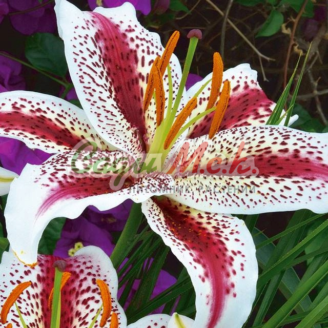 Лилия Dizzy - обладательница обворожительного аромата. Время цветения приходится на июль, даря нам крупные бутоны белоснежного оттенка. Лепестки лилии этого сорта украшены широкой ярко-розовой полоской по середине и густыми бордовыми веснушками по всей ширине лепестка. Цветы отличаются не только ярким окрасом, но и крупным размером. Диаметр цветов при роспуске достигает 15-20 см. Цветение очень длительное. Высота растения достигает 90-100 см, на прочном стебле густо размещены темно-зеленые узкие листья. Лилия идеальна как для высадки на любых видах клумб, так и выращивании на срезку. Сорт в срезке устойчив, что прекрасно подходит как и для любой хозяйки так и для флористов.