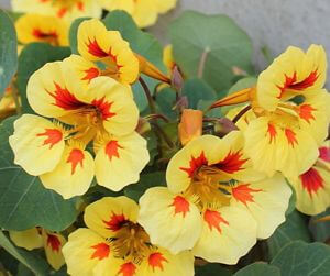 Настурция Peach Melba - цветки кремовые, в центре – красные пятнышки.