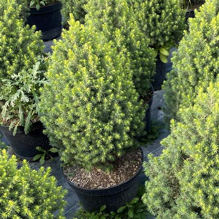 Ель канадская Дейзи Уайт (Picea glauca Daisy's White) - очень декоративная ель конусовидной формы. Ель канадская Дейзи Уайт (Picea glauca Daisy's White). Высота взрослого растения 2-3 м. Хвоя ярко-зеленая, мягкая, особенно декоративна с появлением весной молодых приростов желтовато-белого цвета в мае-июне. Молодой весенний прирост может обгорать от весеннего солнца.