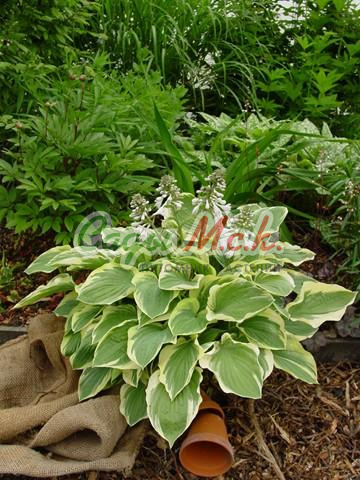 Хоста Аnn Kulра – многолетнее декоративное растение, образующее ярусный куст высотой до 50 см. Листовые пластины достаточно плотные, шелковистые, со слегка волнистым краем, небольшими выемками и сильно выраженным жилкованием. Они образуется весьма декоративный, плотный и компактный куст, который в середине лета зацветает, выбрасывая цветоносы с небольшими, лавандового цвета колокольчиками. Но заметным растение становится благодаря цвету своих декоративных листьев. Сердцевидные, голубовато-зеленые с золотисто-кремовым центром и зеленым краем – такую красивую окраску невозможно не заметить. Со временем светло-кремовый центр становится шире, а вот окантовка листа, наоборот, сужается. Гибридный сорт хорошо себя чувствует и в тени, и на солнце, предпочитая купаться только в утренних его лучах. Он может длительное время расти на одном месте. Но для сохранения расположенной по центру полосы его желательно часто делить.