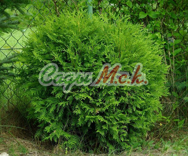 Туя западная Recurva Nana - карликовый кустарник до 2 м высоты и такого же диаметра. Крона шаровидная. Ветви прямые и восходящие. Веточки скрученные. Хвоя чешуйчатая, густая, матово зеленая, зимой буровато-зеленая.