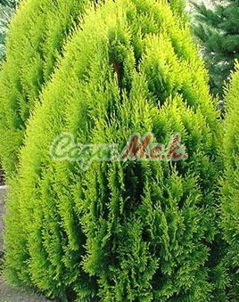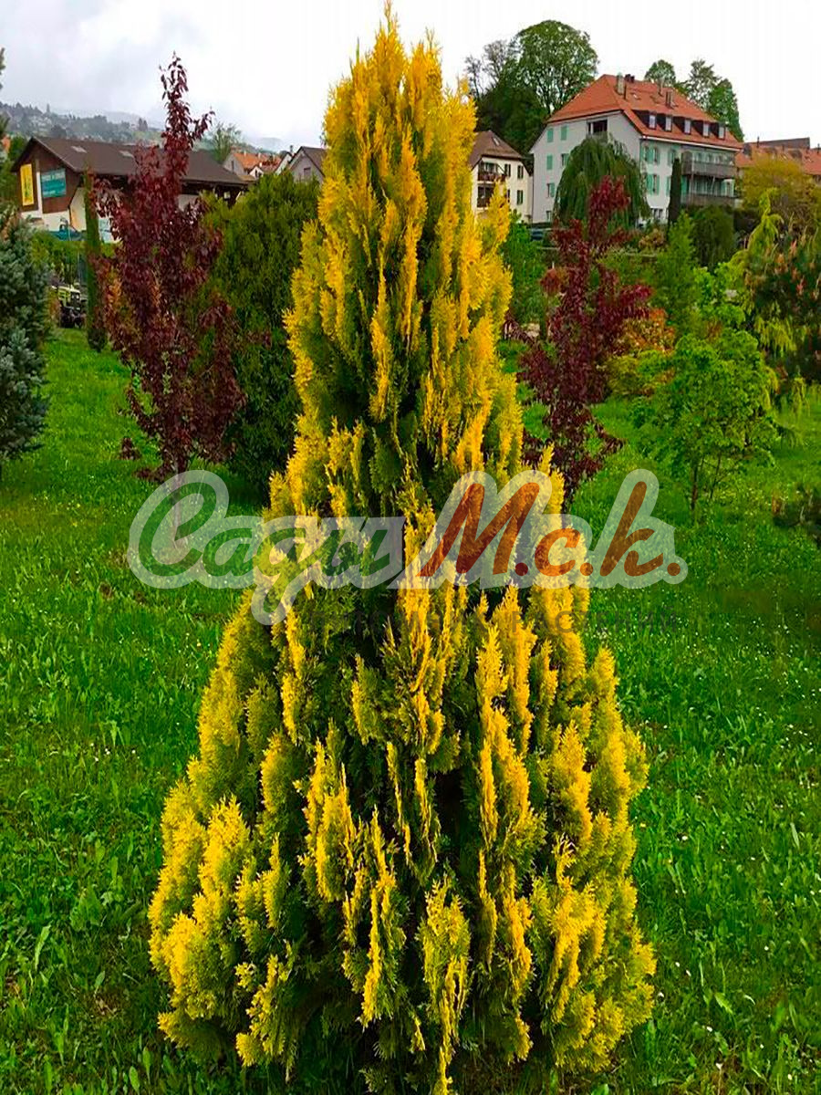 Семена туи западной Stolwijk, миниатюрного вечнозеленого кустарника, можно приобрести в нашем профессиональном питомнике. 10-летнее растение достигает 1 м в высоту. Туя формирует сначала крону в виде купола, но с возрастом она больше напоминает ассиметричный конус. Снизу ветви чуть разрежены, сверху они расположены плотнее. Старая хвоя чешуйчатая, насыщенного зеленого оттенка, а вот молодой прирост – лимонный. Крупномер западный Stolwijk предпочитает солнечные участки, в тени крона становится рыхлой, теряет декоративность. Сорт морозостоек, но плохо переносит жару. В период засухи кустарник нужно поливать и проводить дождевание.